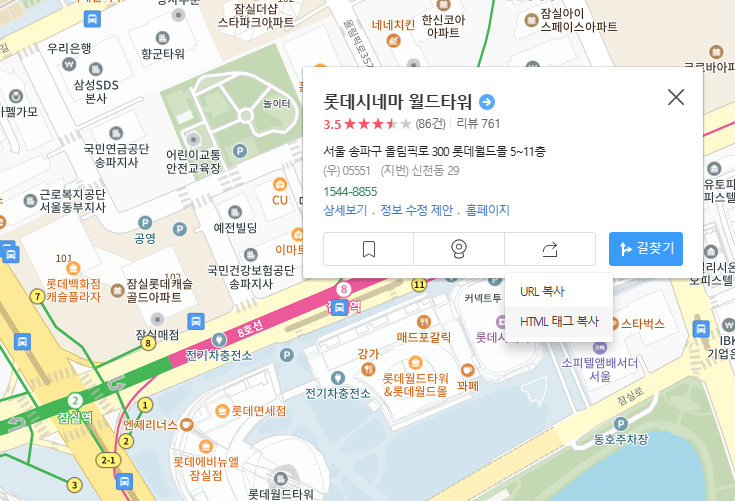 단, 일반지도는 확대 축소, 이동 가능한 코드가 생성되지만 이미지지도는 사진처럼 이미지 코드만 생성되기 때문에 확대 축소, 이동은 불가능하다. 원하는 기능에 따라 복사해서 사용하자